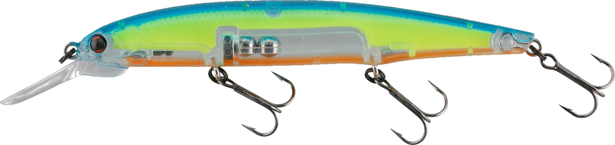 As a floating jerk bait specializing in ripping and retrieving that twists water, the “lip riser” has an immovable track record. As the opposite, “Dardo” isa dart-specialized reaction jerk bait that pursues sharp slide darting action to the utmost limit. The dart that moves from side to side with a twist, and the flashing with a high blinking effect that occurs from the momentary posture restoration strongly stimulates the hunting instinct of the unmotivated low activity bass. Dardo (meaning DART in Italian) is a light jerk that suppresses stringing to the utmost and makes a big dart, so the burden on the wrist is light and it is designed so that you will not get tired even if you continue to jerk for a day. Even beginners who are not good at jerking can easily generate sharp dart . In addition, by installing a unique magnet type center of gravity movement system, it demonstrates outstanding long-distance casting performance regardless of size and stable dive performance .