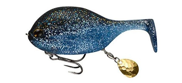 The Ima Coolzilla is a compact, round body swimbait with a blade at the end for extra flash and vibration and it swims through the water.